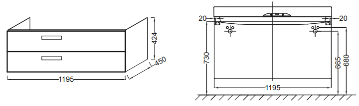 2 выдвижных ящика с механизмом «плавное закрывание».