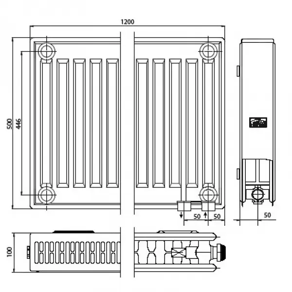 Купить Радиатор стальной панельный X2 Profil-V Typ22 BH500x100x1200mm (справа) FTV220501201R2K артикул: 147272 в интернет-магазине ESMAG - Челябинск.