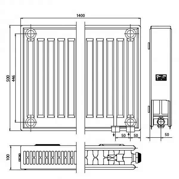 Купить Радиатор стальной панельный X2 Profil-V Typ22 BH500x100x1400mm (справа) FTV220501401R2K артикул: 147275 в интернет-магазине ESMAG - Челябинск.