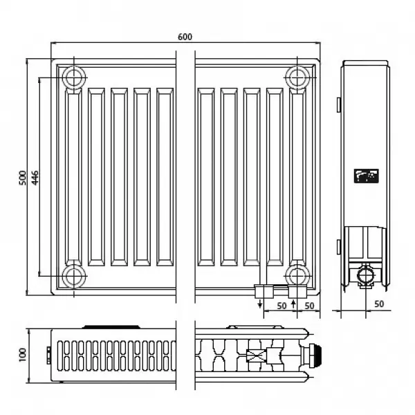 Купить Радиатор стальной панельный X2 Profil-V Typ22 BH500x100x600mm (справа) FTV220500601R2K артикул: 147266 в интернет-магазине ESMAG - Челябинск.