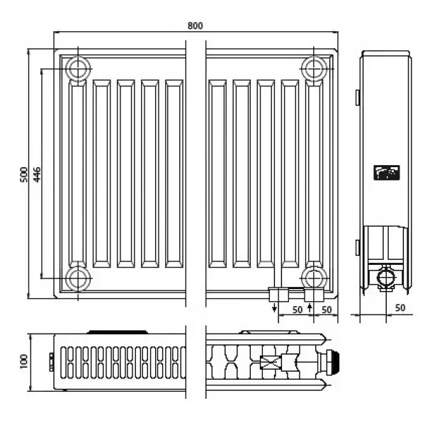 Купить Радиатор стальной панельный X2 Profil-V Typ22 BH500x100x800mm (справа) FTV220500801R2K артикул: 147268 в интернет-магазине ESMAG - Челябинск.