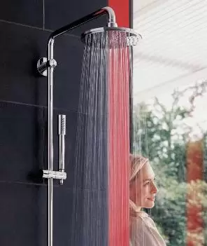 Верхний хромированный душ A-QA 6651105-00 с системой против известковых отложений. Душ с дождевой струей на шарнире. Класс расхода воды D, класс шума I. Монтаж потолочный, подключение 1/2\".