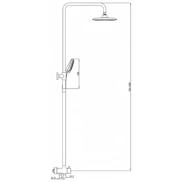 - исполнение: Душевая штанга легко подключается к имеющемуся смесителю с помощью шланга (входит в комплект). Устанавливается на стену или в угол душевого уголка. Оснащена переключателем: верхний/ручной душ.