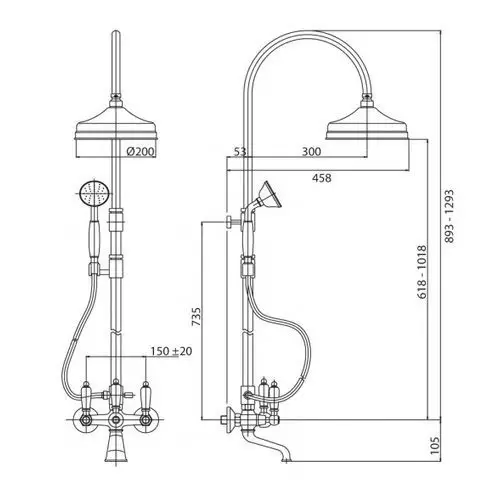 Душевая колонна CEZARES DIAMOND-CVD-01-Sw со смесителем для верхнего и ручного душа, и ручками, декорированными кристаллами Swarovski.