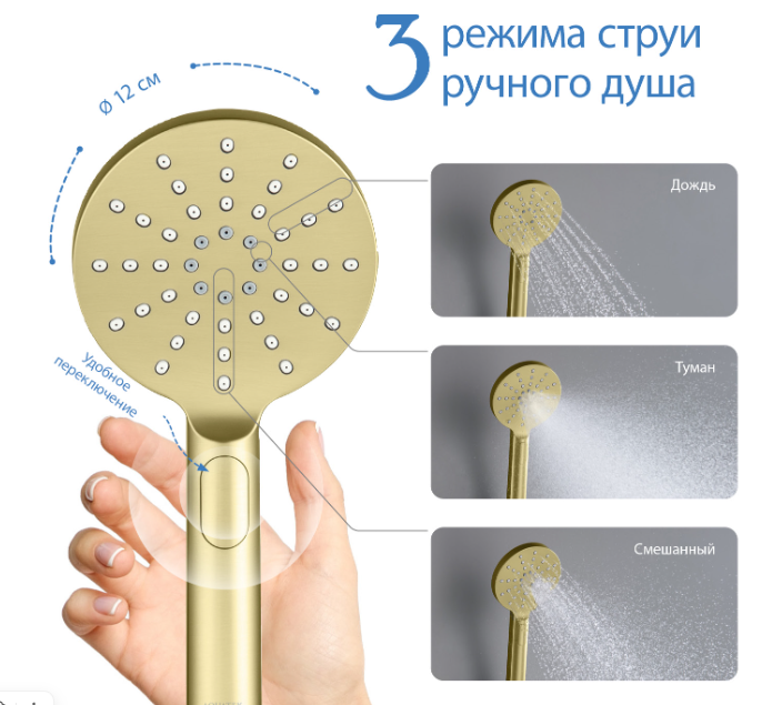 Переключение режимов ручного душа: кнопочное