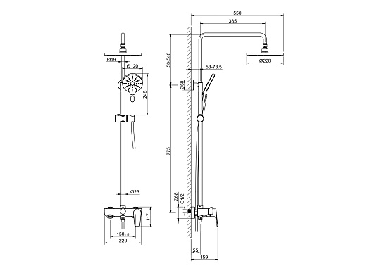 Размер/Диаметр верхнего душа (см): 22