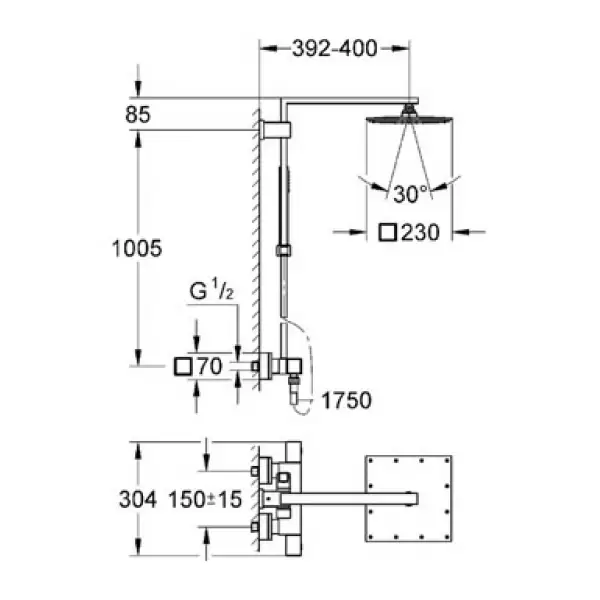 - Настенный термостат с аквадиммером: GROHE TurboStat® встроенный термоэлемент, GROHE EcoJoy® технология совершенного потока при уменьшенном расходе воды;