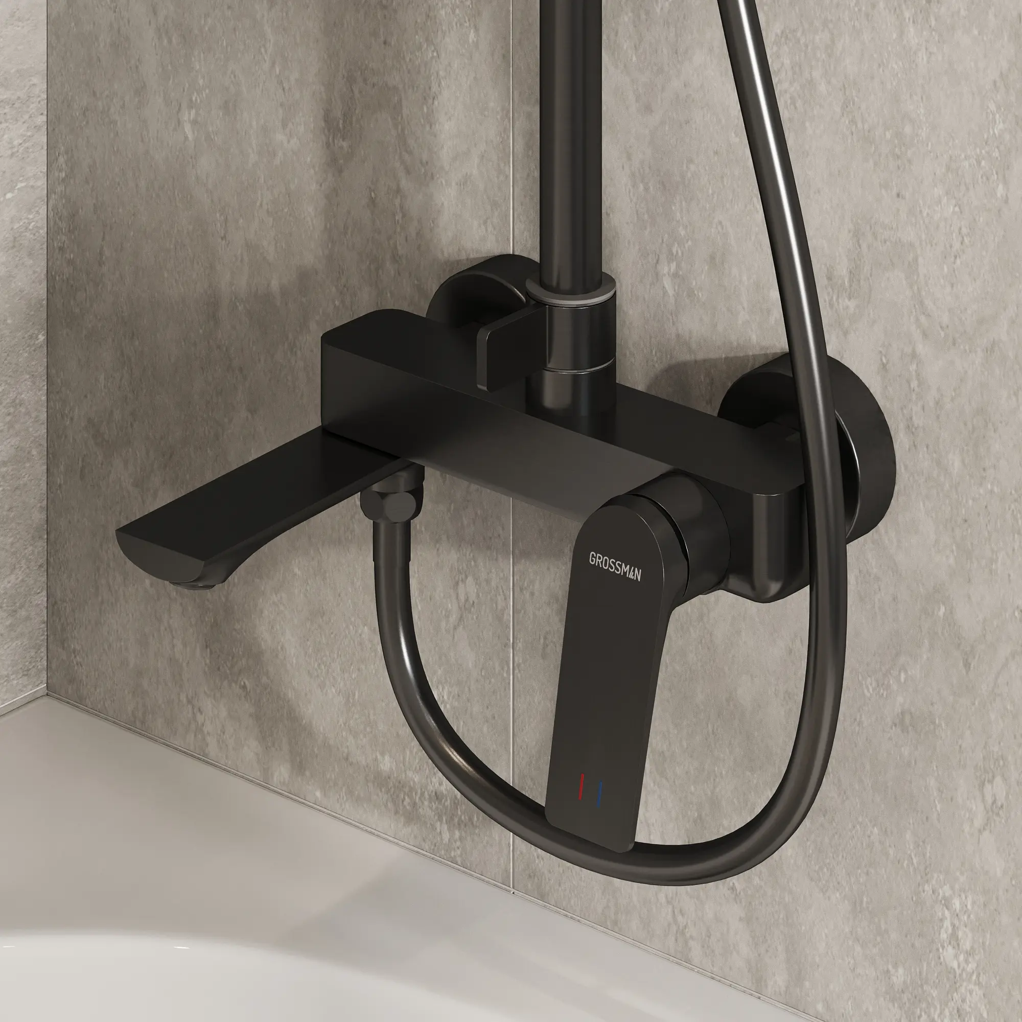 Душевая стойка Galaxy 500.K35.01.420 ТМ GROSSMAN в брашированном графитовом исполнении с тропическим душем, лейкой и изливом - это идеальное сочетание высокого качества и доступной цены. Она подходит для установки в душевых углах, перегородках, а так же над ванной. Ключевые особенности: