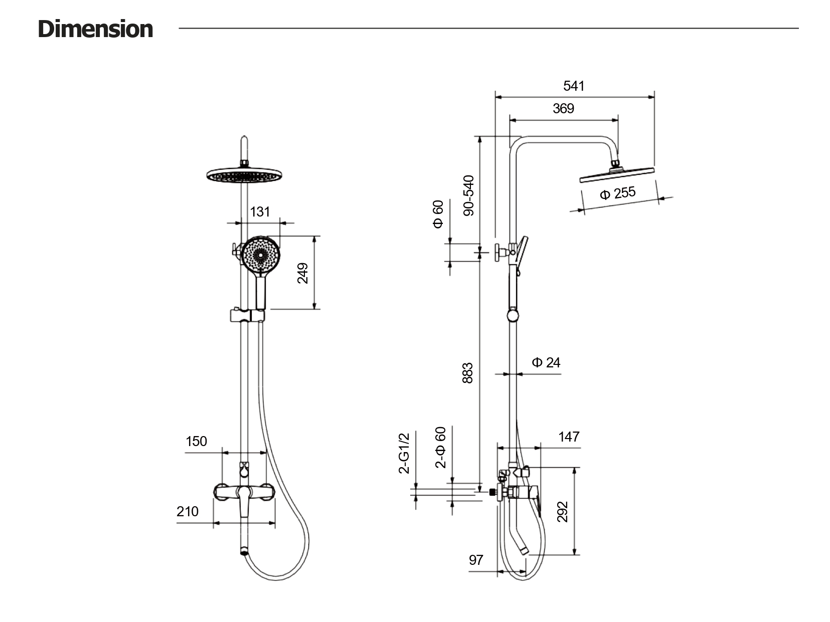 • регулируемая душевая штанга из нержавеющей стали, выдвигающаяся до 1484 мм в высоту