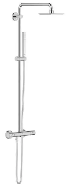 Легкие линии идеально подойдут к свежему дизайну современной ванной комнаты, которая направлена на создание комфортного и приятного опыта - таков дизайн, в котором выполнена душевая система GROHE Euphoria 150 с термостатом. Технология GROHE TurboStat предоставит вам точный контроль и поддержит необходимую температуру воды. Отличная характеристика для семей, технология GROHE SafeStop, ограничивает температуру воды до 38˚, в то время как функция SafeStop Plus предлагает дополнительное ограничение до 43˚. Душевая система включает в себя верхний душ Euphoria Cube (150 мм), душевой кронштейн (450 мм), ручной душ Euphoria Cube Stick и душевой шланг Silverflex (1750 мм) с функцией антискручивания. Переключаться между верхним и ручным душем легко благодаря функции AquaDimmer. Режим струи Rain в верхнем душе предлагает настоящий опыт расслабления. Технология GROHE DreamSpray гарантирует, что поток воды из каждой душевой форсунки будет одинаковым. Ручной душ оснащен технологией GROHE EcoJoy, которая ограничивает расход воды до 9,5 л/мин - экономичная функция без ущерба для комфорта принятия душа. Очищение форсунок осуществляется очень просто благодаря технологии GROHE SpeedClean. Долговечная и ослепительная, хромовая поверхность GROHE StarLight сохранит свой блеск на долгие годы. Суперизолированный внутренний водный канал WaterGuide предотвращает нагревание поверхности, что помогает сохранить хромовую поверхность в идеальном состоянии. Эта душевая система с термостатом монтируется на стену. Возможно, вы также захотите приобрести к ней полочку EasyReach (26362), чтобы ставить на нее шампунь или мыло.