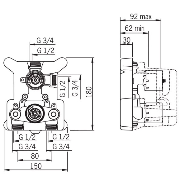 Oras Optima, душевая система скрытого монтажа с верхним душем rain shower. Оснащена встраиваемым термостатическим смесителем с защитой от ожогов и кнопкой ограничения расхода воды. Комплект включает верхний душ rain shower 257 х 197 мм с душевой штангой 450 мм, ручной душ Oras Apollo с защитой от известковых отложений, выводом из стены для шланга, настенным держателем для душа и душевым шлангом 1500 мм.
