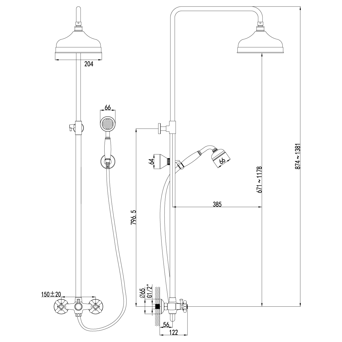 - Душевой шланг 1,5 м