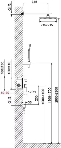 - Душевая система скрытого монтажа с квадратной лейкой в стиле модерн