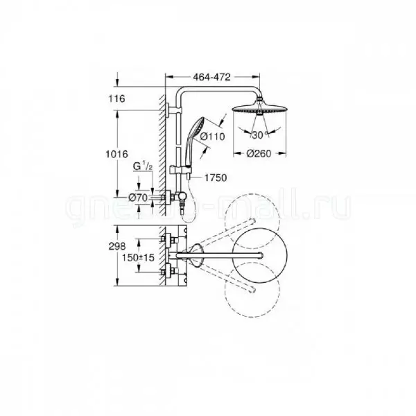 Душевая стойка Euphoria 260 верхний душ, ручной душ (хром) 27473001 GROHE.