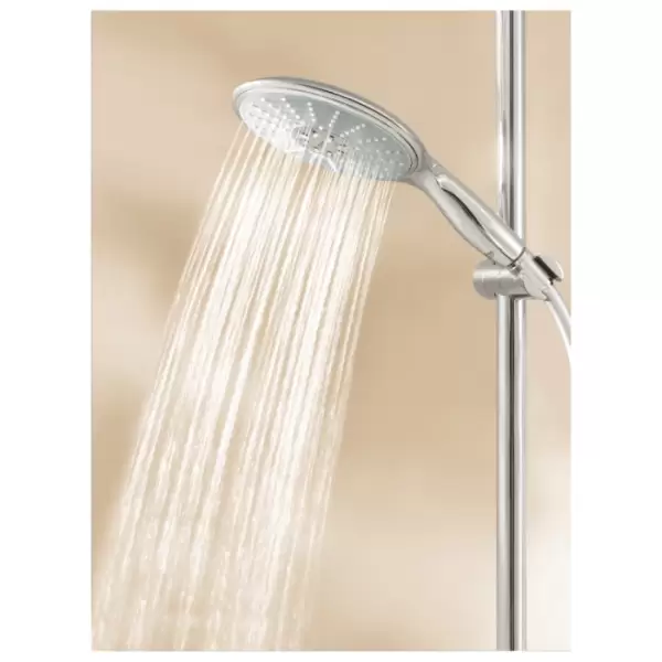 - Ручной душ Power&Soul 27 675 000: 160мм, 4 вида струй, GROHE DreamSpray® превосходный поток воды, GROHE StarLight® хромированная поверхность с системой GROHE SpeedClean® против известковых отложений, внутренний охлаждающий канал для продолжительного срока службы, ограничитель расхода воды 9,5 л/мин, может использоваться с проточным водонагревателем, GROHE EcoJoy® Технология совершенного потока при уменьшенном расходе воды;