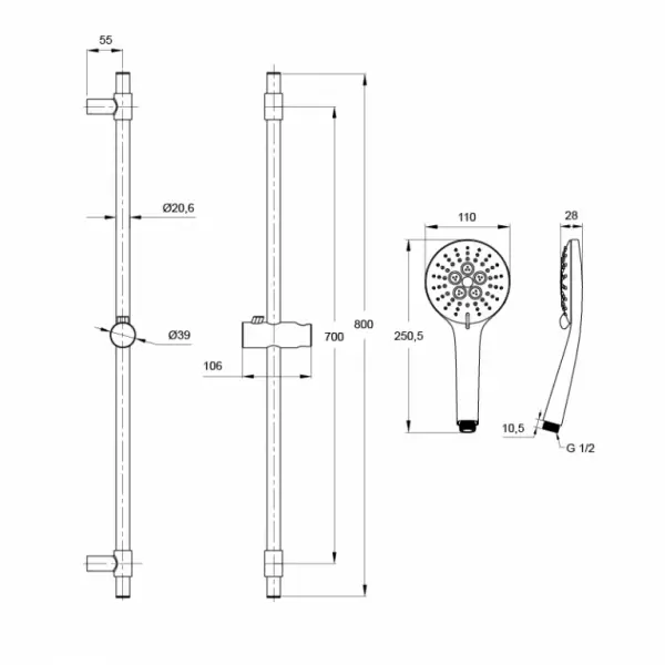 - Дополнительно: мыльница; кольцо для фиксации шланга