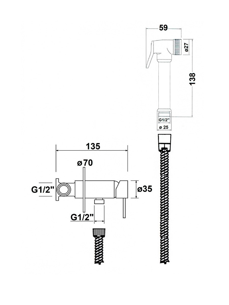 Готовый комплект гигиенического душа (скрытый монтаж, латунная лейка), хром Minimal AQM6020CR AQUAme в г.Челябинск