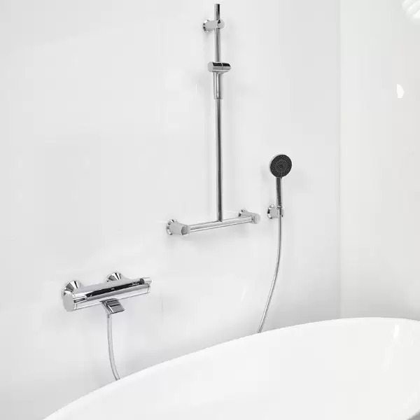 Душевая штанга оборудована опорной рукояткой, которая сделает принятие водных процедур комфортнее и безопаснее. Такой поручень будет особенно удобен для пожилых людей, детей и инвалидов.