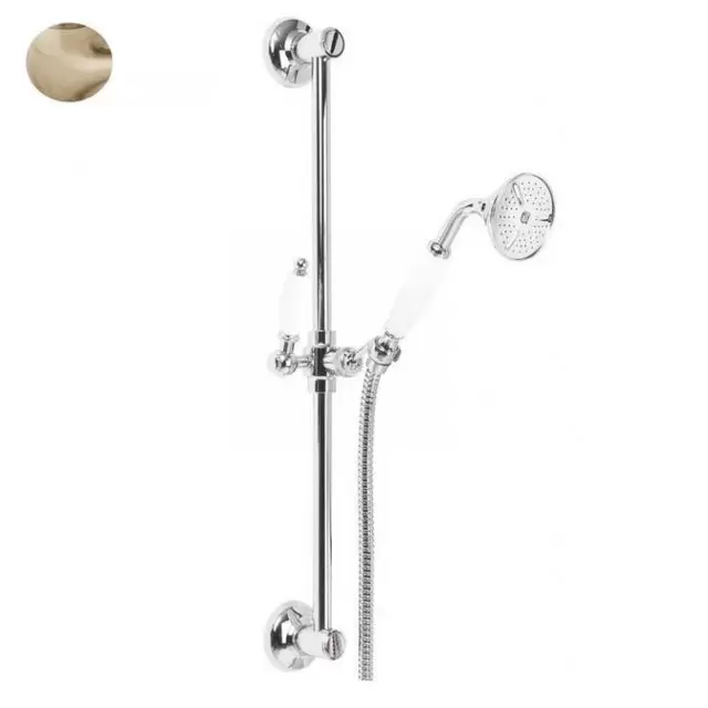 Душевой гарнитур CEZARES LORD-SD-02-Bi с ручным душем, штангой, держателем для лейки и белой ручкой.