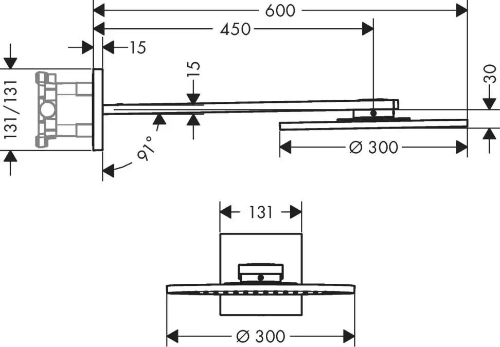 - размер душевого диска: 300 мм