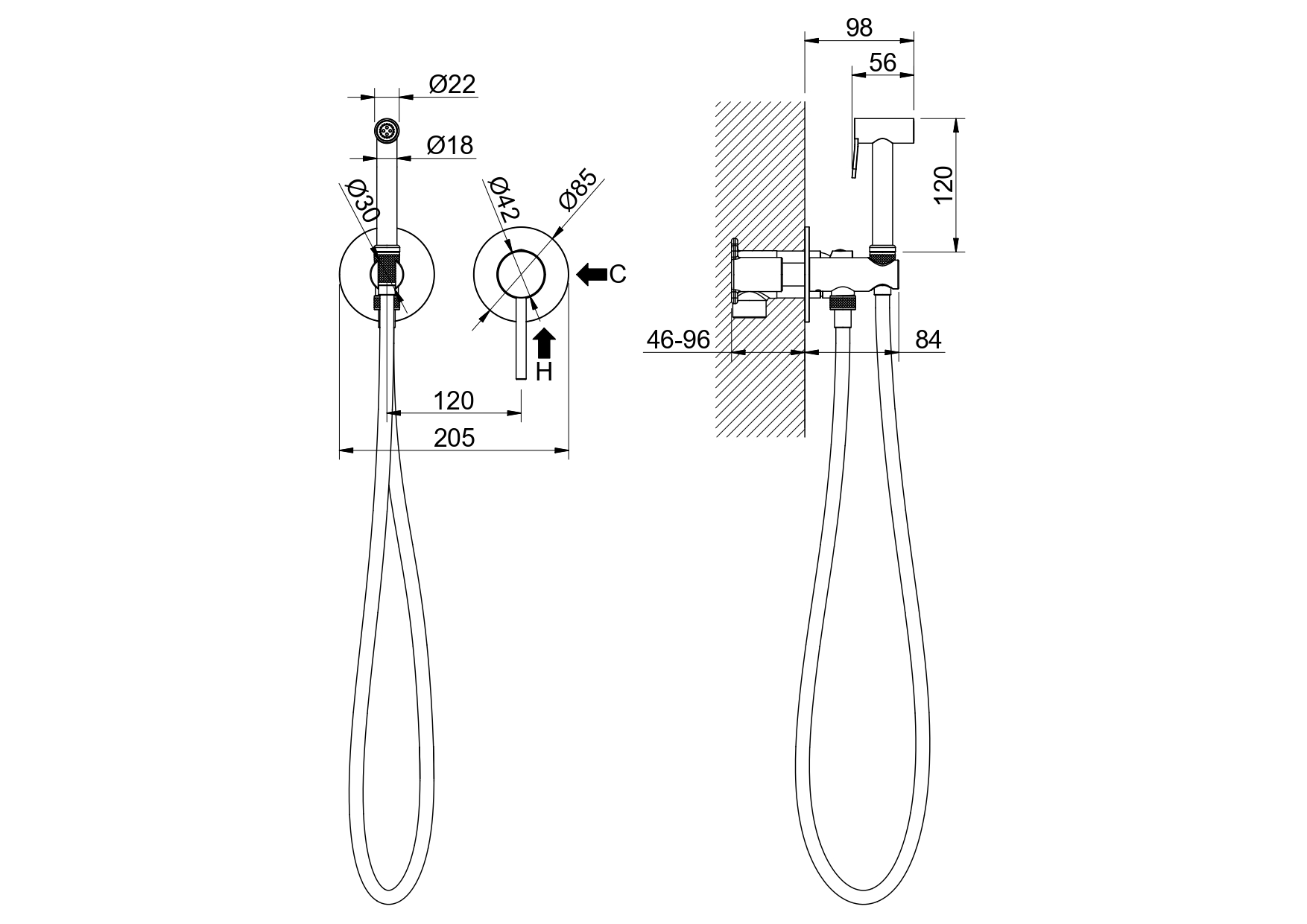 Длина шланга для гигиенического душа (см): 120