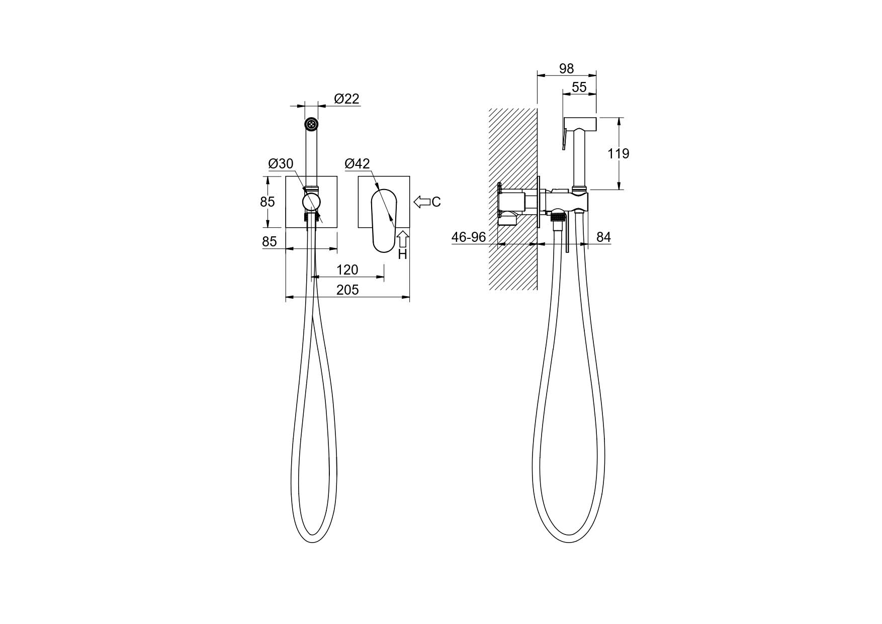 тип изделия: гигиенический душ со смесителем