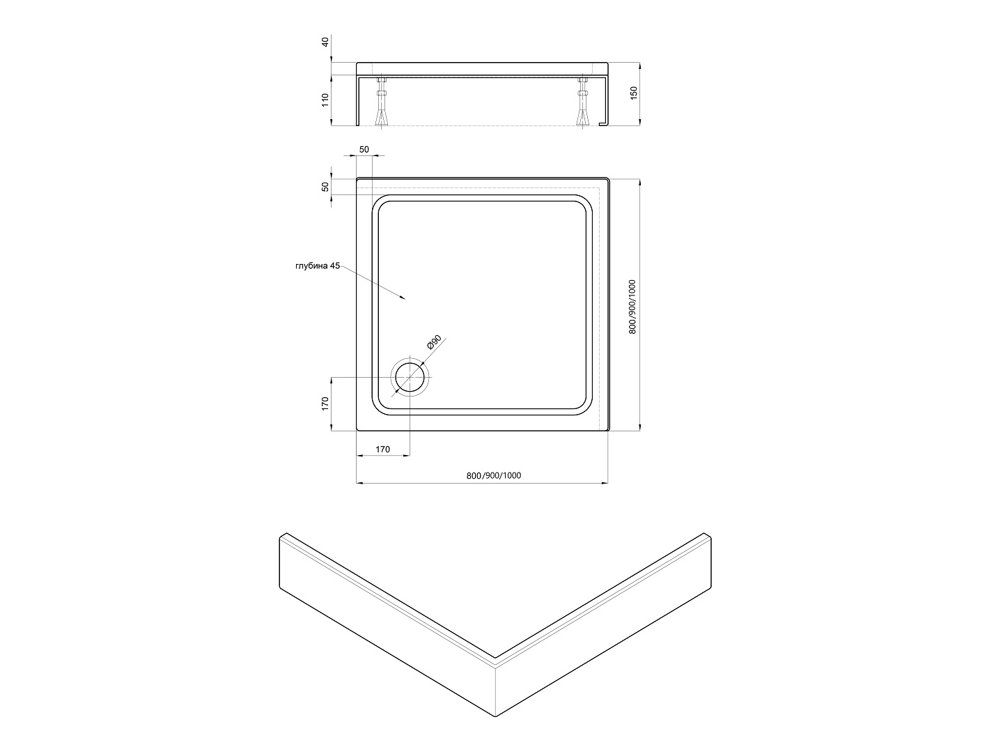 Купить Душевой поддон 100х100х15 акриловый, с ножками и съемной панелью, квадратный Aquatek артикул: 217429 в интернет-магазине ESMAG - Челябинск.