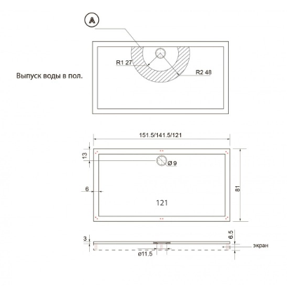 поддон имеет низкую высоту всего 3 см, что позволяет его установить непосредственно на пол