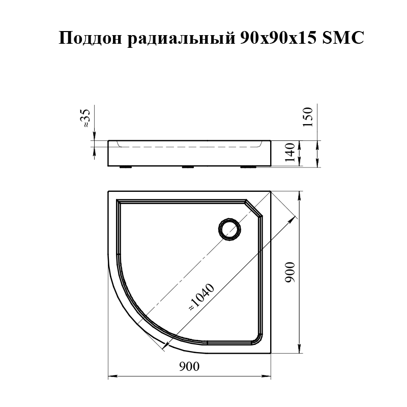 Поддон радиальный 900х900х150 SMC Radomir A150 (на раме-подставке с устройст слива) 1-11-0-0-0-154 в г.Челябинск