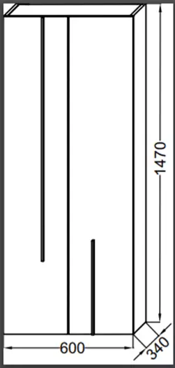 Размеры: ширина 600 мм, глубина 340 мм, высота 1470 мм.