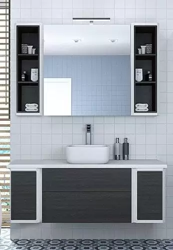 В основе коллекции лежат базовые модули, которые, в зависимости от компоновки, могут быть укомплектованы раковинами или столешницами с накладной раковиной. Вы можете выбрать закрытые базовые модули (сящиками), либооткрытые. На полочках открытых модулей можно разместить все, что должно быть под рукой, в закрытых ящиках можно скрыть всё, что не должно быть на виду.