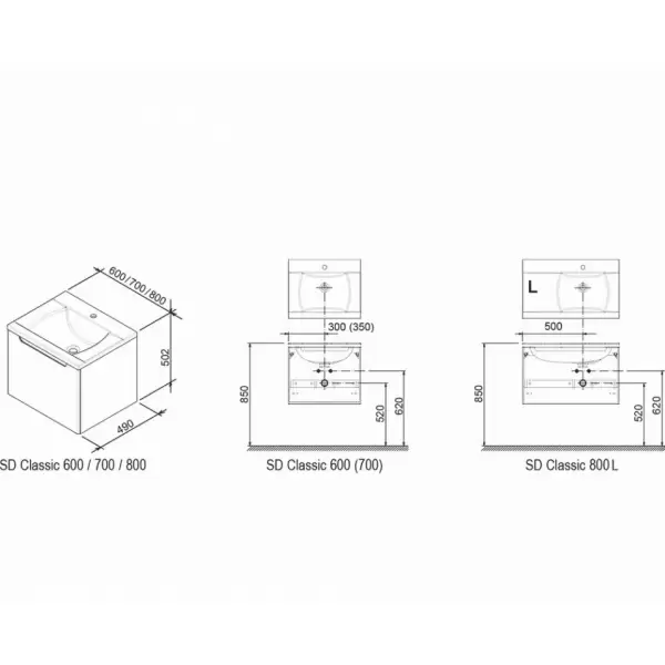 - Умывальник: Умывальник Classic 600