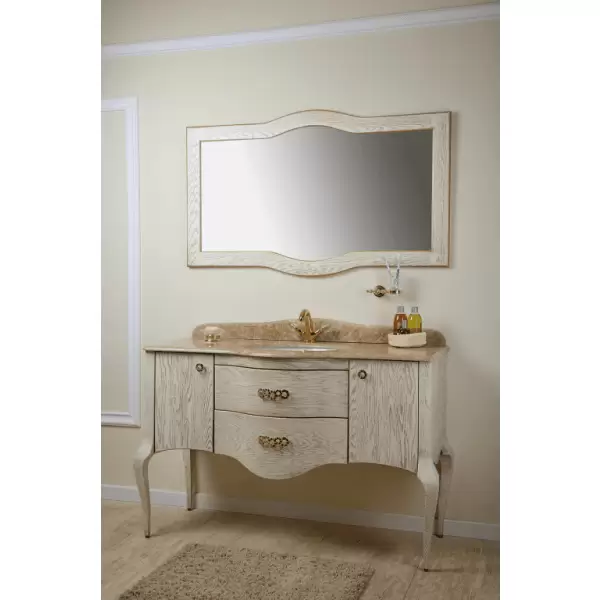 Тумба с 2-мя выдвижными ящиками и дверцами с раковиной и столешницей Elsa 130 H-VR 9001 с патиной золото Timo.