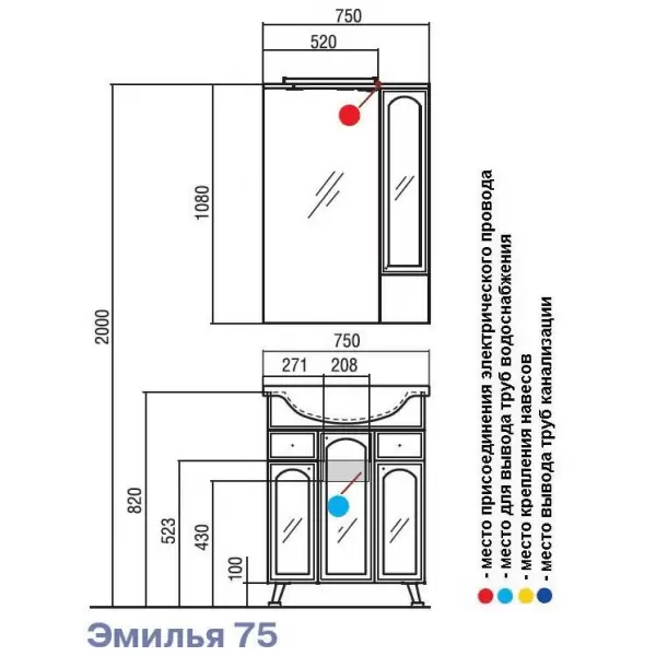 - Тумба-умывальник Эмилья 75 арт.568-1K