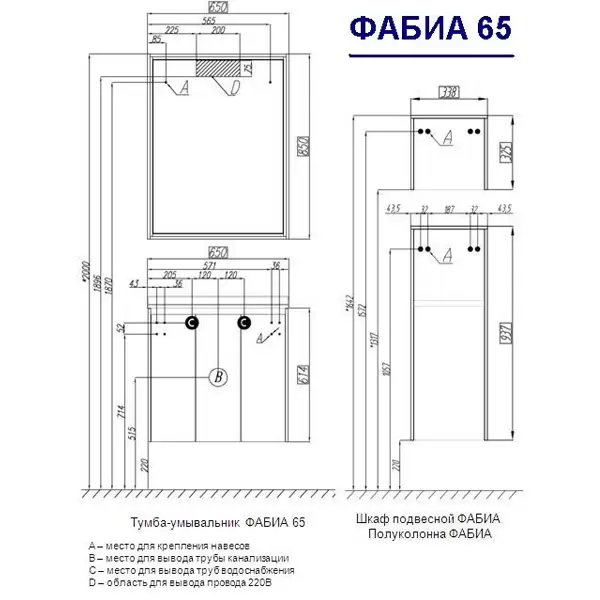 - Ширина – 650 мм;