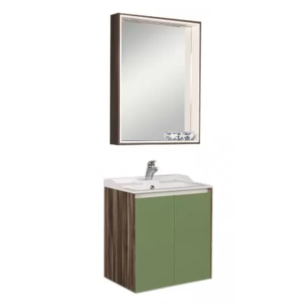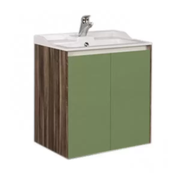 Тумба-умывальник "Фабиа 65 М" фисташка/дуб инканто 1A159601FBAC0 с раковиной "Фабиа 65" белая.