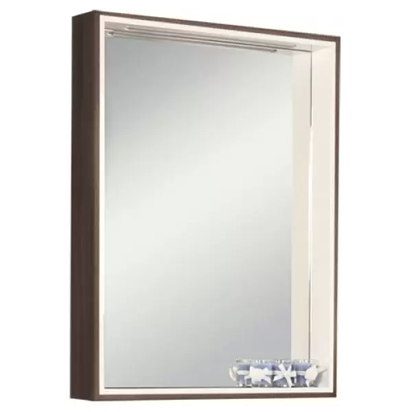 Зеркало-шкаф Фабиа 65 белый/дуб инканто 1A159702FBAF0. Корпус зеркала имеет двойную конструкцию. Благодаря этому рама имеет широкие края, поэтому ее нижнюю часть можно вполне использовать в качестве полки для нешироких ванных принадлежностей. Полотно изготовлено со специальной амальгамой, не подверженной воздействию пара. Зеркало оснащено подсветкой итальянского производства с сенсорным выключателем, который встроен под стекло. Оно имеет матовое покрытие и закрывает светящуюся LED-ленту, обеспечивая тем самым равномерное и не слишком яркое свечение. Включение/выключение света осуществляется плавно, по нарастающей.
