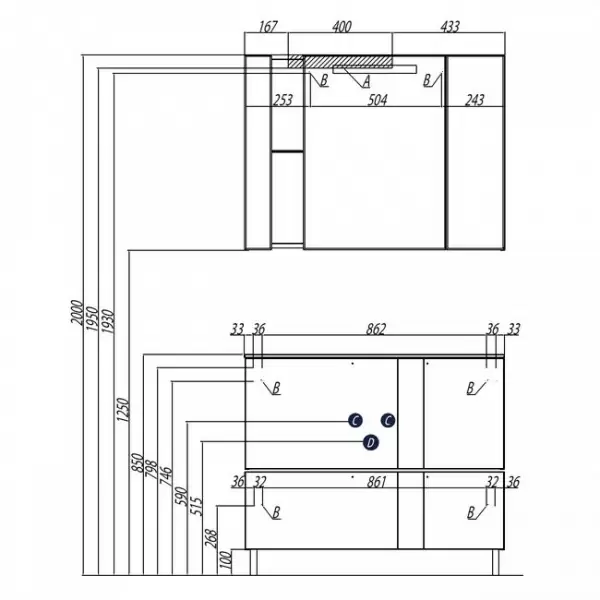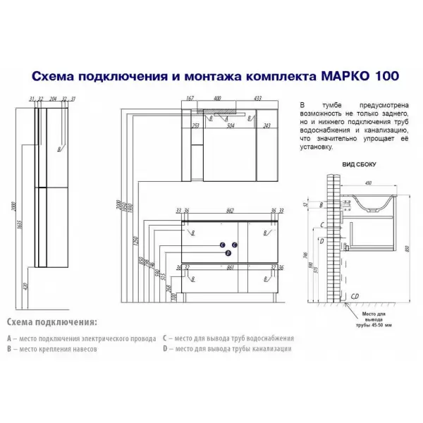 2) Тумба-умывальник Марко 100 997*430*443 белый глянец 1A190201MO010