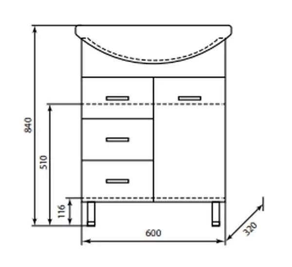 Купить Комплект мебели напольный Балтика-65 3 ящика с зеркальным шкафом Лилия артикул: К5325 в интернет-магазине ESMAG - Челябинск.