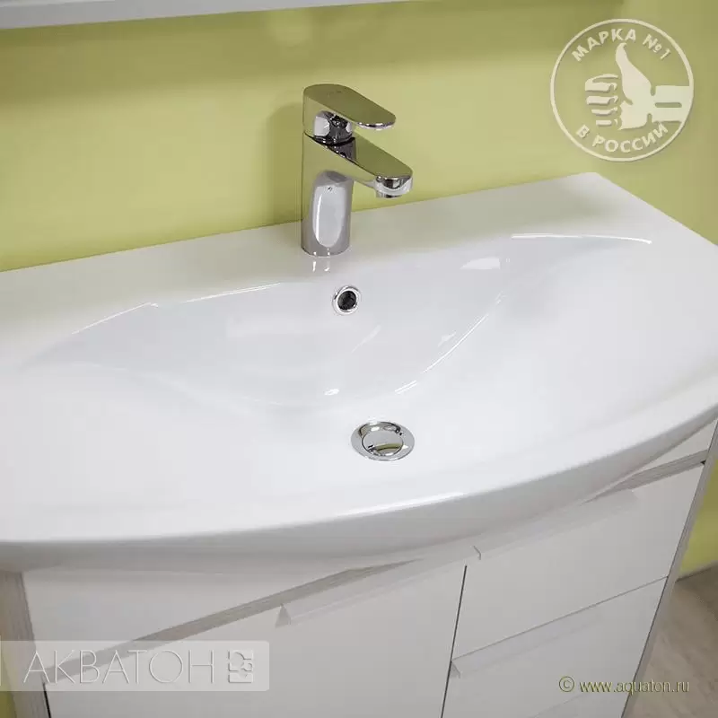 Благодаря широкому размерному ряду комплектов – с раковинами шириной 50, 65 и 80 см, а также современным лаконичным белым ручкам на тумбе и отсутствию лицевой фурнитуры на зеркальном шкафчике коллекция универсальна и гармонично впишется в любую ванную комнату.