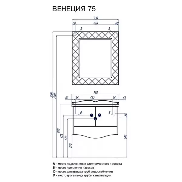 Комплект мебели Венеция 75 черный Акватон