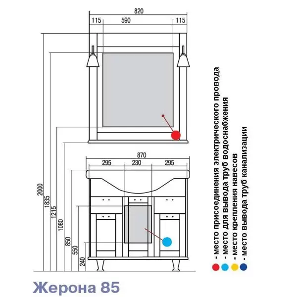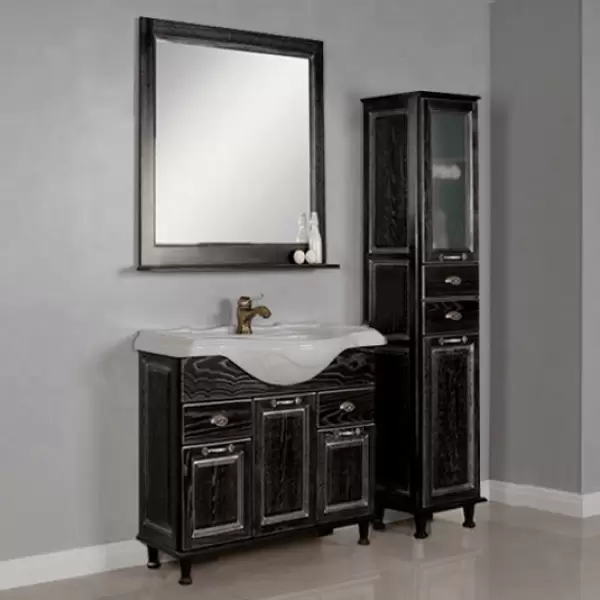 При изготовлении изделий этой коллекции используются натуральные материалы – шпон и массив. Тумба комплектуется на выбор либо раковиной из литого мрамора (ЛАУРА), либо раковиной из санфаянса (AMERICA). Оба варианта характеризуются изящными формами, глубокой чашей и широкой поверхностью. Тумба очень функциональна с точки зрения организации внутреннего пространства. Два небольших выдвижных ящика под раковиной вместят в себя множество мелочей. Их плавное движение осуществляется за счет направляющих скрытого монтажа итальянского производства. Вещи большего размера можно спрятать за любым из трех фасадов. Для открывания створок в изделиях этой коллекции применяются петли с интегрированной системой плавного закрывания от ведущего европейского производителя — компании Blum. Ручки, украшенные кристаллами, изготовлены из специального сплава, благодаря чему они устойчивы к истиранию и влаге. Большое зеркало в обрамлении рамы строгой классической формы дополнено полкой. Изящные светильники одного из ведущих итальянских производителей GIPA воздушны, изящны и наполняют помещение теплом. Кроме тумб и зеркал в коллекции ЖЕРОНА имеется и более вместительная система хранения — шкаф-колонна с двумя ящиками и распашными фасадами, за которыми установлены стеклянные полки, регулируемые по высоте.