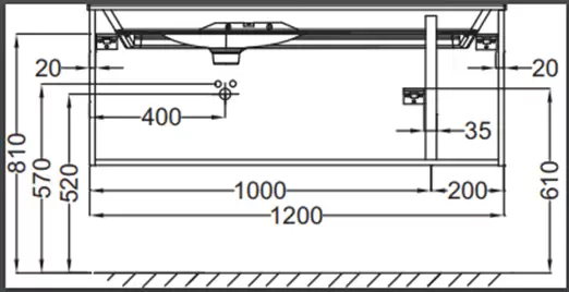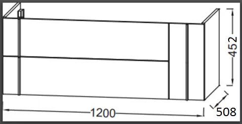 Размеры: ширина 1200 мм, глубина 508 мм, высота 452 мм.