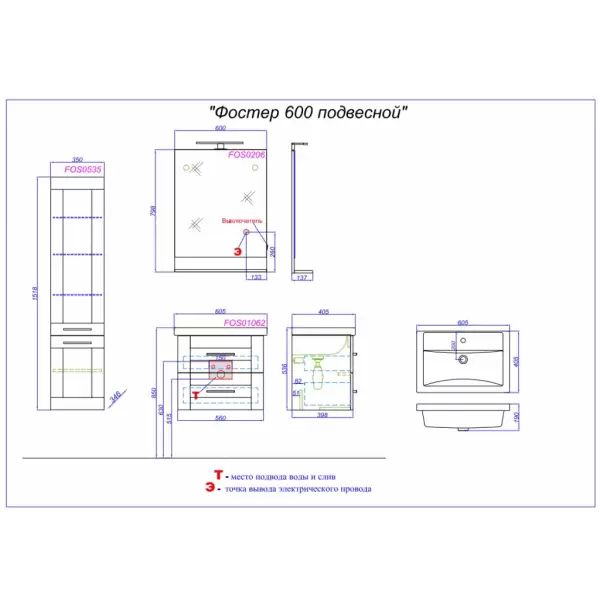 Купить Пенал подвесной универсальный дуб сонома FOSTER FOS0535DS артикул: 147299 в интернет-магазине ESMAG - Челябинск.