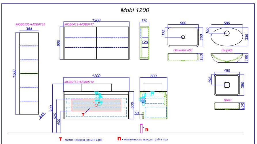 Купить Подвесная тумба 120 см, белый/дуб балтийский; с умывальником, Mobi, MOB0112W+MOB0712DB артикул: 198655 в интернет-магазине ESMAG - Челябинск.