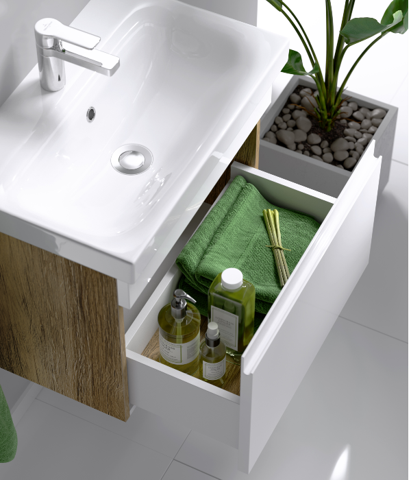 Купить Подвесная тумба с одним ящиком, дуб балтийский с умывальником, Smart, SRT0108DB артикул: 198681 в интернет-магазине ESMAG - Челябинск.