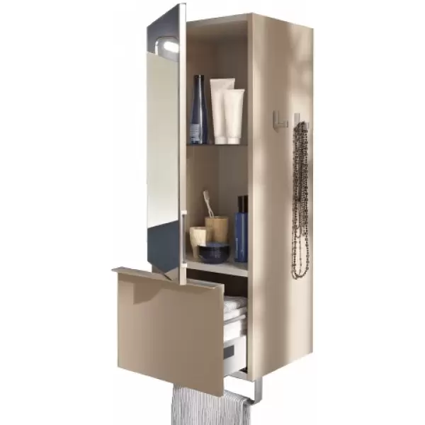 - Практичность: 2 крючка для украшений, 1 полотенцедержатель, и 1 зеркальная дверца для комфортного ежедневного использования