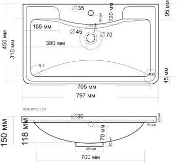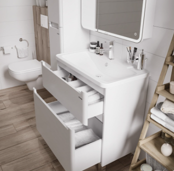 Раковина Адель 80 4627173210249 Madera. Она может встроена на мебель, в столешницу и на подстолье. Верхний глянцевый слой гелькоута образует красивое декоративное и защитное покрытие. Сливная арматура в комплекте. Округлая форма за счет скругленных углов создает плавность форм и линий дизайна, а также способствует улучшению эргономики пространства в ванной комнате.