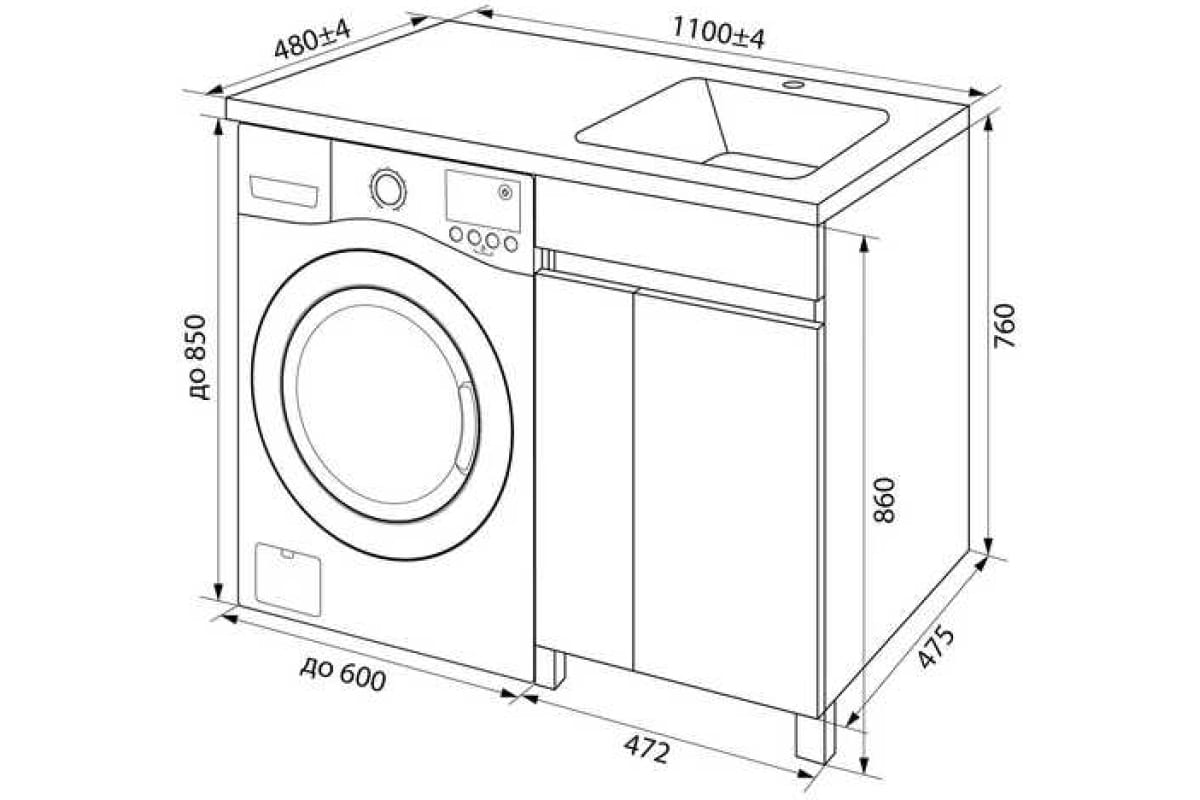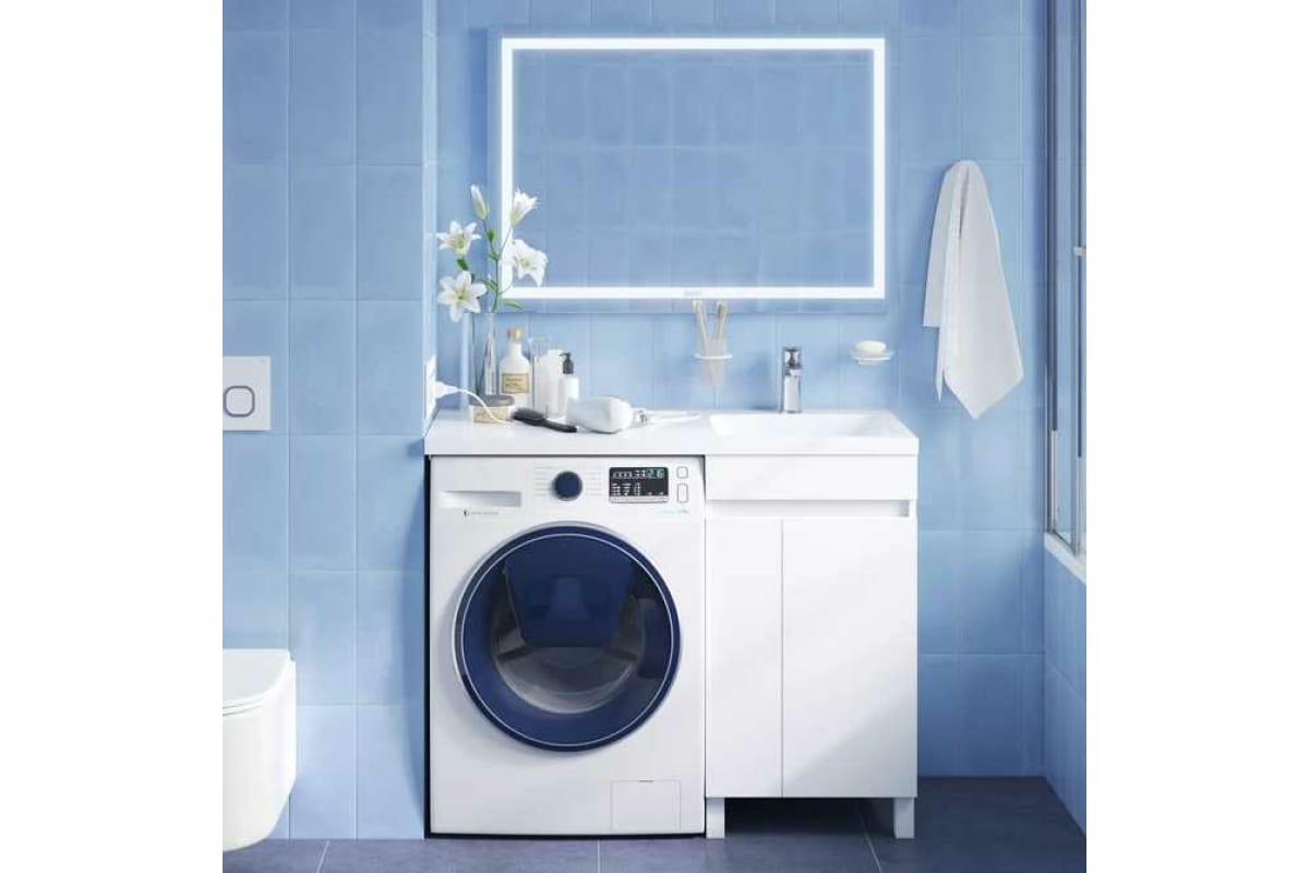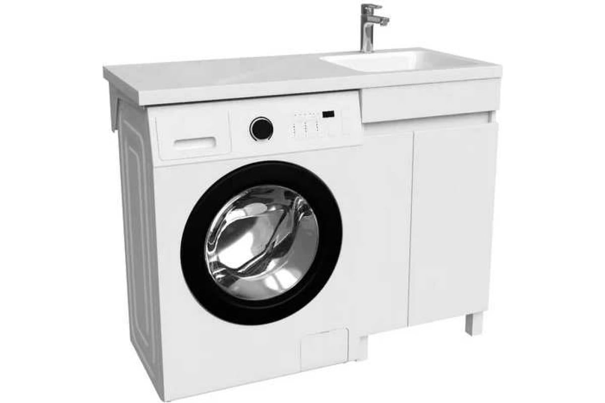 Уникальная тумба с умывальником напольная для стиральной машины с дверцами, 110 см, правая, белая, Optima Home: доставим ее прямо в вашу квартиру с бережностью и заботой!