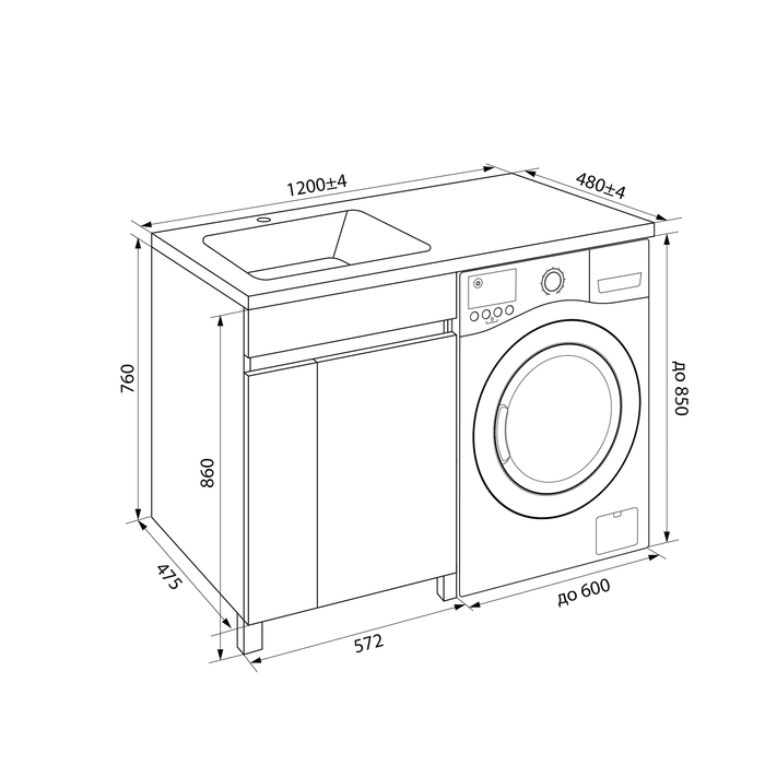 Тумба с умывальником напольная для стиральной машины с дверцами, 120 см, левая, белая, Optima Home. в г.Челябинск
